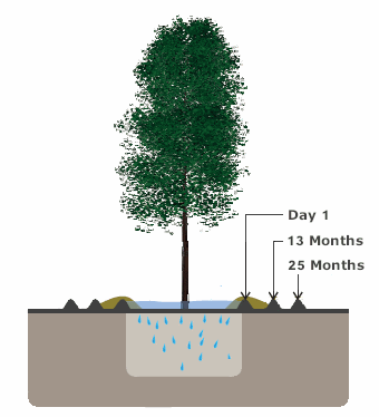 Newly planted trees only have roots in the rootball (See Watering Newly Planted Trees: Part 1) so for the trees to be able to establish rapidly, the rootball must be kept moist during establishment.